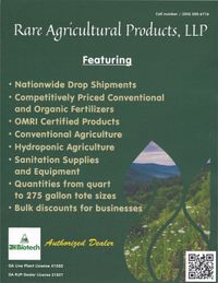 Rare Agricultural Products, LLP is a limited liability partnership, based in Lee County, GA that thrives in bringing sound agronomic practices and ROI based products and practices to growers. Our goal is to redefine the role of agriculture and reinvigorate the passion of those within it. What makes us rare is our ability to create nutrient and integrated management plans for our clients and provide them with products specifically designed to increase their ROI and the efficiency of their operation. The products that we provide are fertilizers, fungicides, pesticides, soil amendments, sanitation products and agricultural chemicals. Consultation, employee compliance training and nationwide ag supplier shipments with no retail store or stocking yard overhead are the bedrock of the business and this allows us to tailor plans for your business and save our clients’ money on products. The motto of Rare Ag Products is: Redefining Agriculture, Reinvigorating Expectations. We look forward to doing business with you.