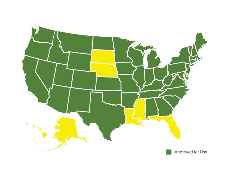 Approved for Use in the Following States/Provinces: AL; AR; AZ; CA; CO; CT; DE; GA; IA; ID; IL; IN; KS; KY; MA; MD; ME; MI; MN; MO; MS; MT; NC; ND; NH; NJ; NM; NV; NY; OH; OK; OR; PA; RI; SC; TN; TX; UT; VA; VT; WA; WI; WV; WY